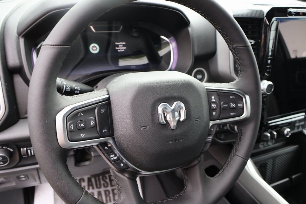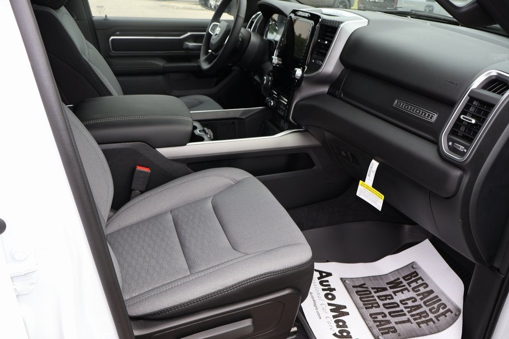 The 2026 RAM 1500 Big Horn Crew Cab 4x4 with the 6'4" box is a mid-level trim that offers a blend of style, comfort, and work-ready capability. For the 2026 model year, the RAM 1500 continues its evolution with key updates to the engine lineup and technology, making it a highly competitive choice in the full-size pickup truck market. The Crew Cab and 6'4" box combination provides a great balance of passenger space and cargo length. ### Key Features and Performance * **Engine Options:** The 2026 RAM 1500 Big Horn offers a choice of two main engines: * **Standard Engine:** The 3.6-liter Pentastar V6 with eTorque is standard on this trim. This engine produces 305 horsepower and 269 lb-ft of torque. It is a solid, efficient choice for everyday use. * **Available Engine:** An optional 3.0-liter Hurricane Twin-Turbo I6 is available. This engine delivers a significant boost in power, with 420 horsepower and 469 lb-ft of torque, providing enhanced capability for demanding towing and hauling tasks. The legendary 5.7-liter HEMI V8 has also returned for the 2026 model year on certain trims and may be available on the Big Horn as well. * **Transmission and Drivetrain:** All engines are paired with a smooth-shifting 8-speed automatic transmission. This specific model is a 4x4, equipped with a part-time four-wheel-drive system for enhanced traction. * **Ride and Handling:** The RAM 1500 continues to lead its class with its coil-spring rear suspension, which provides a ride that is notably smoother and more comfortable than trucks with a traditional leaf-spring setup. * **Towing and Payload:** The Big Horn is a highly capable truck. When properly equipped with the Hurricane I6, it can tow up to 11,570 pounds and haul a payload of up to 1,980 pounds. With the standard Pentastar V6, the maximum towing capacity is 8,110 pounds, and the maximum payload is 2,370 pounds. * **Dimensions:** The Crew Cab and 6'4" box configuration provides a spacious cabin with ample rear legroom and the long box offers a cargo length of 76.3 inches. ### Interior and Technology The interior of the 2026 RAM 1500 Big Horn is a major selling point, offering a blend of comfort and modern technology that rivals more expensive trims. * **Infotainment:** The truck comes standard with the Uconnect 5 infotainment system and an 8.4-inch touchscreen display. It includes wireless Apple CarPlay and Android Auto. An optional 12-inch touchscreen display is also available. * **Seating and Comfort:** The Big Horn features comfortable cloth seating, with bucket seats and a center console available as an option. The Crew Cab configuration offers a very spacious rear seat. Optional packages can add features like heated front seats and a heated steering wheel. * **Other Features:** Standard features include remote keyless entry, push-button start, and a 6-speaker audio system. The 2026 model year also sees the availability of a customizable 12.3-inch digital driver display. ### Exterior and Styling The 2026 RAM 1500 has a refreshed exterior design that is both modern and bold. The Big Horn trim maintains its classic style with some updated touches. * **Exterior Accents:** It features a chrome grille and chrome front and rear bumpers. It rides on 18-inch cast-aluminum painted wheels. * **Lighting:** The Big Horn comes with new, redesigned LED headlamps and standard LED fog lamps, which provide excellent visibility and give the truck a modern look. ### Safety The 2026 RAM 1500 Big Horn comes with a solid list of standard and available safety and driver-assistance features. * **Standard Safety:** Standard features include a rearview camera, rear parking sensors with a stop function, and Blind Spot Monitoring with Rear Cross-Path and Trailer Detection. * **Available Features:** The optional Big Horn Level 2 Equipment Group adds more advanced safety features, such as Adaptive Cruise Control with Stop and Go, Lane Keep Assist, and Forward Collision Warning with Active Braking.