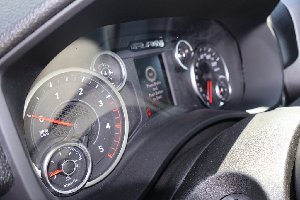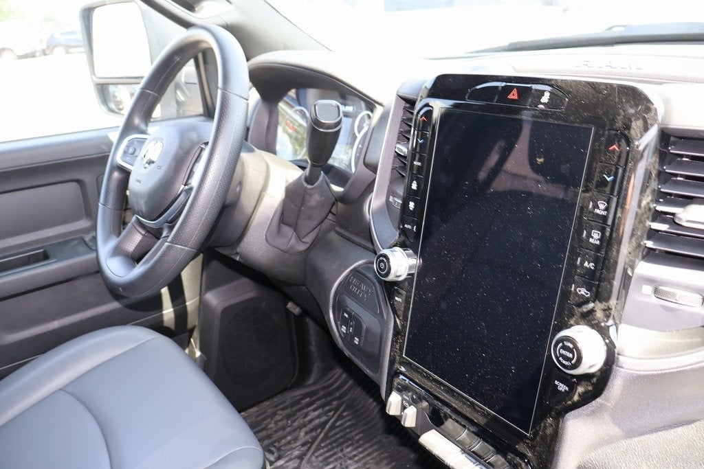 The 2025 RAM 2500 Tradesman Crew Cab 4x4 with the 6'4" Box is the entry-level trim of the heavy-duty truck lineup, built for demanding jobs. Despite being the base model, it offers a robust platform and a solid list of standard features, with the ability to be upgraded with a range of packages to meet specific work or towing needs. The 2025 model year brings some key updates to the powertrain and technology. ### Key Features and Performance * **Engine Options:** The 2025 RAM 2500 Tradesman offers two powerful engine choices: * **Standard Engine:** The workhorse is a 6.4-liter HEMI V8 gasoline engine, which produces 405 horsepower and 429 lb-ft of torque. * **Available Engine:** For maximum capability, an optional 6.7-liter Cummins Turbo Diesel I6 is available. This engine delivers an impressive 430 horsepower and a massive 1,075 lb-ft of torque. * **Transmission and Drivetrain:** Both engines are paired with a TorqueFlite 8-speed automatic transmission. This specific model is a 4x4, equipped with a part-time four-wheel-drive system with a two-speed transfer case for enhanced traction and off-road capability. * **Towing and Payload:** The RAM 2500 is built for heavy-duty tasks. * **Max Towing:** When properly equipped with the Cummins diesel engine, it can tow up to 20,000 pounds. With the standard HEMI V8, the maximum towing capacity is around 17,730 pounds. * **Max Payload:** The payload capacity is also substantial, with the HEMI V8 capable of hauling up to 3,940 pounds. * **Ride and Handling:** The RAM 2500 sets itself apart in the heavy-duty class with its coil-spring rear suspension (on most trims), which provides a noticeably smoother and more comfortable ride than the leaf-spring setups of competitors. ### Interior and Technology The Tradesman interior is designed to be durable and functional, but it also comes with modern technology. * **Infotainment:** The truck comes standard with the Uconnect 5 infotainment system and an 8.4-inch touchscreen display. It includes wireless Apple CarPlay and Android Auto, a 4G LTE Wi-Fi hotspot, and a 6-speaker sound system. An available upgrade is a larger 12-inch touchscreen display with navigation. * **Seating and Configuration:** The Crew Cab offers a spacious cabin with ample room for passengers. The seats are a durable vinyl or heavy-duty cloth, designed for the rigors of a worksite. The 6'4" box provides a good balance between passenger space and cargo length. * **Convenience:** The Tradesman includes push-button start, remote keyless entry, and a full-vinyl/rubber floor covering for easy cleanup. ### Exterior and Features The Tradesman trim has a more utilitarian exterior, but it is built for work. * **Exterior Accents:** It features black bumpers, door handles, grille, and side mirrors. It rides on 17-inch black steel-styled wheels. * **Work-Focused Features:** The truck comes standard with a Class V receiver hitch and a trailer brake controller. It also has features like automatic LED reflector headlamps and LED fog lamps for enhanced visibility. * **Optional Packages:** The Tradesman can be optioned with equipment groups like the "Tradesman Level 1" and "Level 2," which add features such as power windows, a power-adjustable driver's seat, and an upgraded infotainment system.